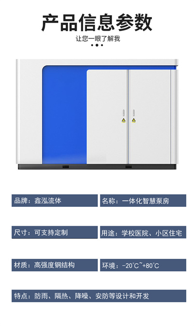 一體化集成廂式智慧泵房是通過水泵,節能環保材料房體,管路、閥門、控制系統、監控系統、安防系統等構成。是農業灌溉,市政輸水,水廠取水、養殖種植用水的供水設備,由工廠統一安排后運輸至實地現場安裝使用交鑰匙泵房。